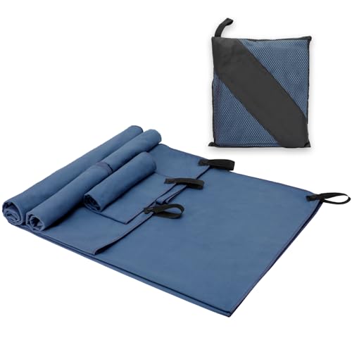 Alyvisun 4st Mikrofiberhandduk, Snabbtorkande Camping Handdukar Lätt Resehandduk Set, Superabsorberande Sport handduk i 3 Storlekar för Yoga Simning Löpning Cykling (Blå)