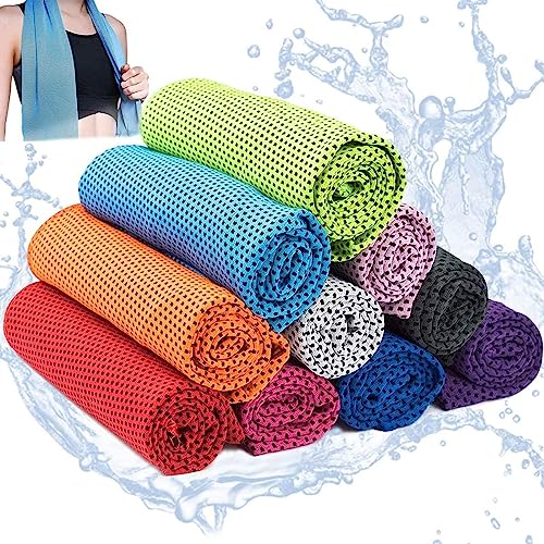 Yisscen 10 stycken kylande handduk, kylhandduk, mikrofiberhandduk, kylhanddukar, strandhandduk med kylfunktion för fitness sport yoga, golf, camping, strand, träning, resor