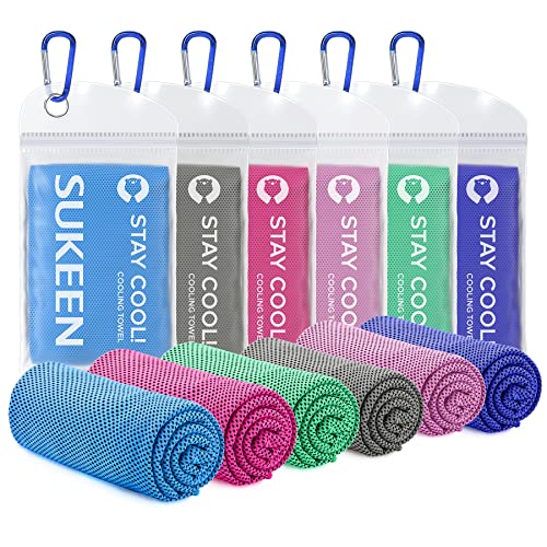 Sukeen Kylhandduk (100 x 30 cm) ishandduk för hals, sval handduk för omedelbar kylning, mjuk andningsbar kall handduk 6 st för yoga, golf, gym, camping, löpning, träning och andra aktiviteter