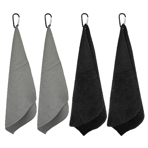 TSHAOUN 4 st golfhandduk, 30 x 30 cm golfhanddukar för golfväskor med klämma, mikrofibertyg rengöringshanddukar multifunktionabsorberande handduk för fitness, sport, utomhus, yoga, camping (svart