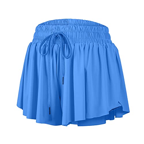 Blaosn Flowy atletiska shorts för kvinnor, till gym, yoga, träning, löpning, korta byxor, tenniskjol, söta kläder, vardaglig, sommar, BLÅ, M