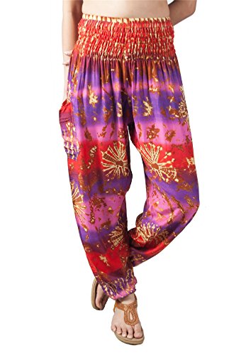 Lofbaz Haremsbyxor för kvinnor yoga boho hippie kläder Palazzo bohemiska strand moderskapsbyxor indisk resekläder, Slips färg lila och rosa, S