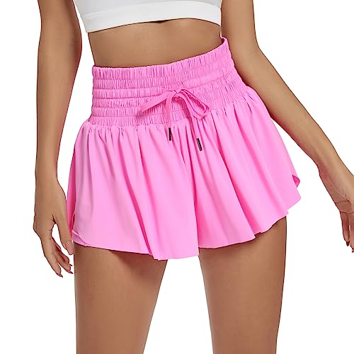 Blommiga atletiska shorts för kvinnor gym yoga träning löpning motorcykel spandex fjäril tenniskjolar söta kläder sommar, Rosa (Hot Pink), XS