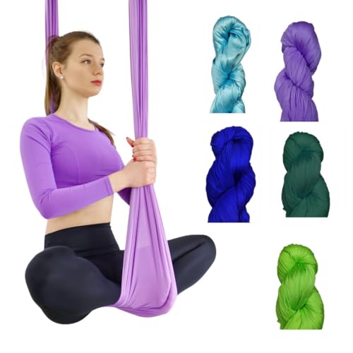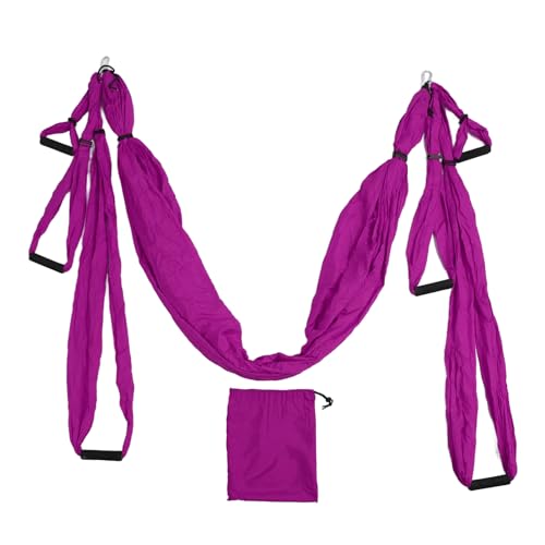 Aerial Yoga Hängmatta, Aerial Yoga Swing Set med Förvaringsväska, Karbinhakar, Användarmanual, Yoga Starter Kit för Alla Nivåer, Aerial Yoga Swing Sling för Yoga Inversion (Lila)