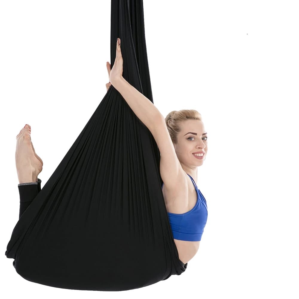 Aerial Yoga Hängmatta Set, 100% Polyester, 5,5 Yards x 3 Yards, 300 kg Kapacitet,svart