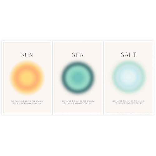 BFADMN Sol Salt och Hav Aura Affischer Kust Canvas Väggkonst Minimalistisk Strandtryck Trendig Hav Stranden Färgglad Abstrakt Aura Sinne Kropp Säl Estetisk Dekor Sovrum Yoga 3 Set 30 x 40 cm Oramad