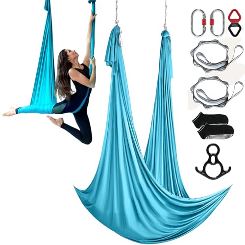 Aerial Yoga Hängmatta, Aerial Yoga Swing Set med Förvaringsväska, Karbinhakar, Användarmanual, Yoga Starter Kit för Alla Nivåer, Aerial Yoga Swing Sling för Yoga Inversion (Lake