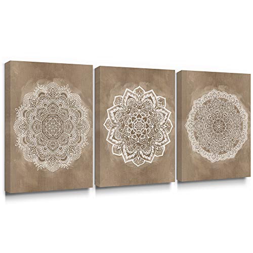 SUMGAR Mandala Wall Art Boho Coffee Pictures Brown Indian Bohemian Art Prints for Walls Floral Canvas Painting Flower Artwork for Bedroom Badrum Vardagsrum Yoga Room 30x40cm Set med 3