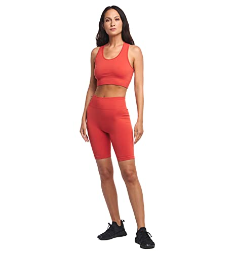 HEART and SOUL Sportträningsset i 2 delar för kvinnor | Shorts/hög midja biker och sömlös stretch bh | Yoga Sportkläder Set | Chilifärg | Storlek XS/S