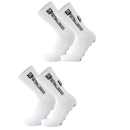Miayical Fotbollsstrumpor Halkfria Herr 39-46, 2 Par Bomull Andningsbara Sportstrumpor, Trekking Grip Fotboll Strumpor, Löpning Maraton Cykling Yoga, Andas och Elastisk, Vit, 39/46 EU