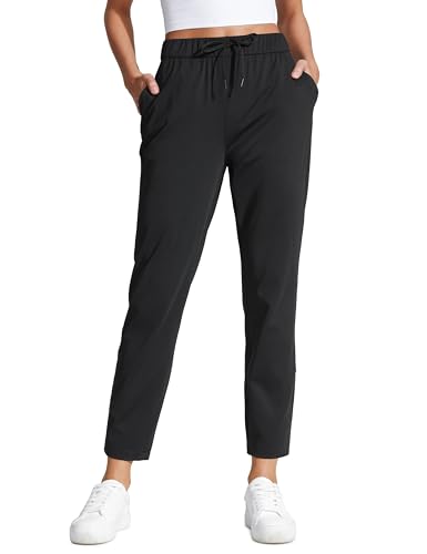 CRZ YOGA 4-vägs Stretch Joggingbyxor För Kvinnor - 27" Travel Lounge Casual Outdoor Workout Byxor Träningsbyxor Med Fickor Svart L