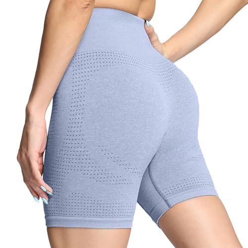 Aoxjox yogakläder för kvinnor, sömlös, 2-delad träning, gym, vital, hög midja, shorts med kortärmad magtröja, set, Vital 2.0 blågrön blå märgel, S