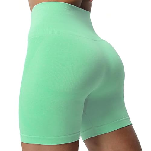 Aoxjox yogakläder för kvinnor, sömlös, 2-delad träning, gym, vital, hög midja, shorts med kortärmad magtröja, set, Kål grön märgel (inte knäböjningssäker men söt), S