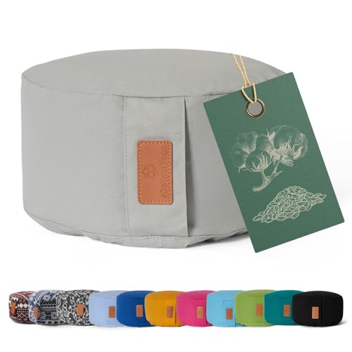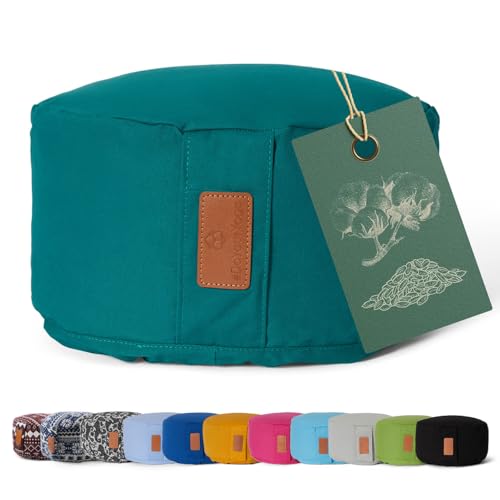 Lotuscrafts Zafu yogakudde Kapok Delight - Zafu meditationskudde - Yogakudde med kapokfyllning - tvättbart bomullsöverdrag - Yoga Zafukudde med fyllning av dinkel