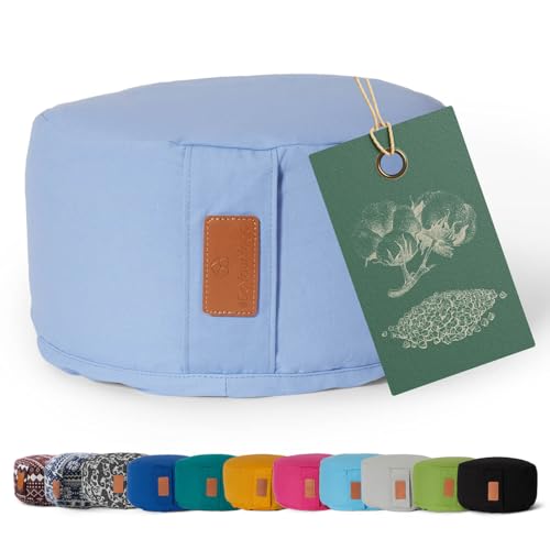 Leewadee Meditation Kuddset – 1 liten Zafu Yogakudde och 1 liten Roll-Up Zabuton-matta fylld med miljövänlig kapok, Blue