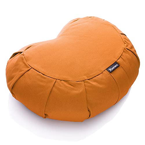 BODYMATE Yogakudde halvmåne, 42 cm läng, 30 cm bred, 15 cm hög med Fyllning av Boveteskal – Maskintvättbart Överdrag av 100% Extra Tjock Bomull – Meditationskudde – Sittdyna