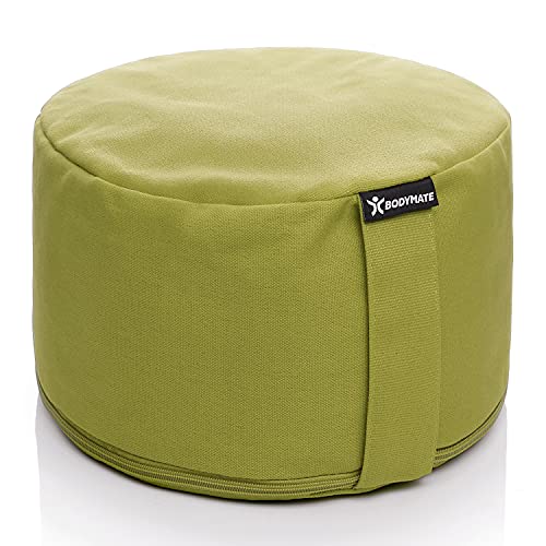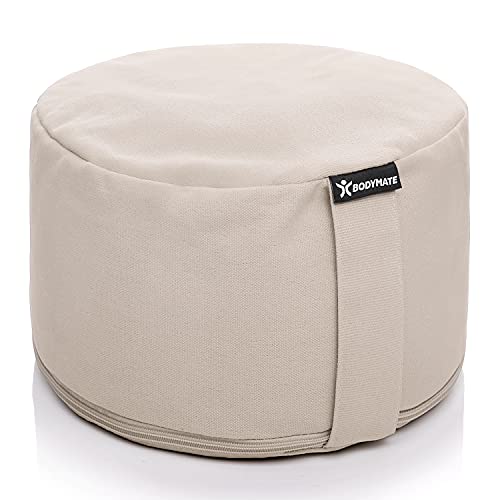 BODYMATE Rund Yogakudde 31 cm i diameter, 13 cm hög med Fyllning av Boveteskal – Maskintvättbart Överdrag av 100% Extra Tjock Bomull – Meditationskudde – Sittdyna