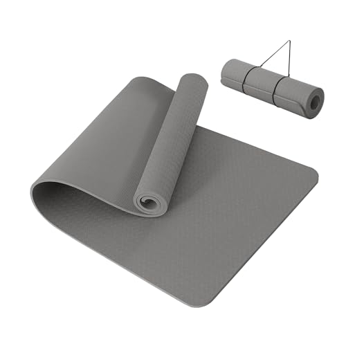 Good Nite yogamatta träningsmattor träning pilates fitnessmatta för kvinnor män halkfri tjock 10 mm högdensitet gymnastikmattor med bärrem Tpe 183 x 61 x 0,6 cm (grå)