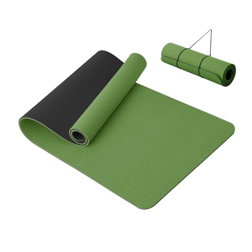 Good Nite yogamatta träningsmattor träning pilates fitnessmatta för kvinnor män halkfri tjock 10 mm högdensitet gymnastikmattor med bärrem Tpe 183 x 61 x 1 cm