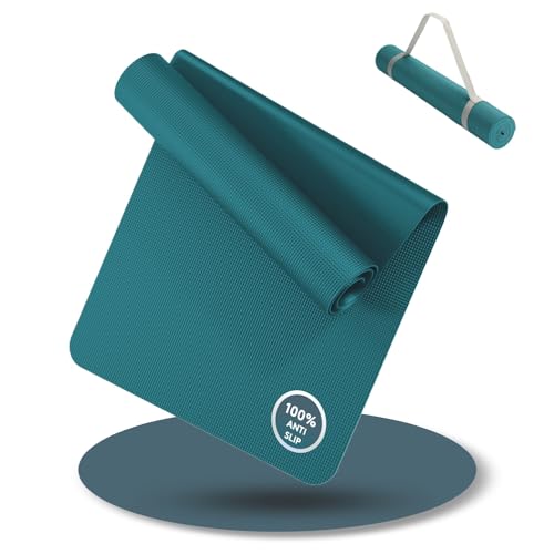 LILENO SPORTS Yogamatta, turkos (180 x 60 cm) – sport och yogamatta, extra halkfri i 4 mm tjocklek – gymnastikmatta och fitnessmatta för träning och yoga – sportmatta för hemmet