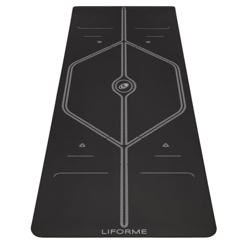 Liforme XL yogamatta – gratis yogamatta ingår – patenterat justeringssystem, krigarliknande grepp, halkfri, miljövänlig, svettbeständig, lång, bred, 4,2 mm tjock matta för komfort