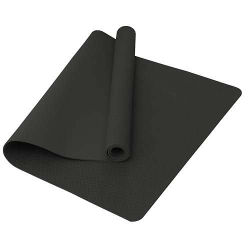 HAPBEAR Yogamatta XXL – extra stor bred yogamatta, TPE sportmatta, fitnessmatta, halkfri, 183 cm x 116 cm x 6 mm tjock, ultrahållbar, gymnastikmatta för pilates, gym, hem, workout – svart