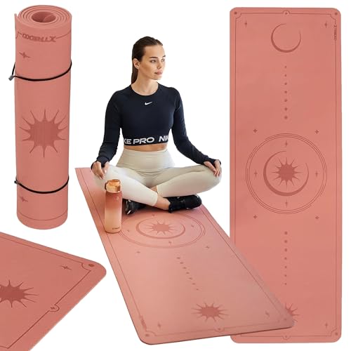 ROMIX Yogamatta för Män Kvinnor, Miljövänlig halkfri TPE 6 mm Träningsmatta med inriktningslinjer, Fitnessmatta, professionell matta för exakta poser, med bärrem, Hem Gym Pilates Meditation Stretching