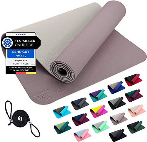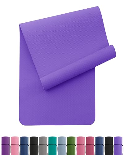Yogamatta, halkfri och miljövänlig TPE, sportmatta med bärrem gymnastikmatta för pilates, träningsmatta, 183 x 61 x 0,6 cm (lila)
