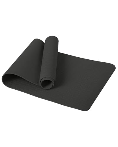 Yogamatta, halkfri och miljövänlig TPE sportmatta med bärrem, gymnastikmatta för pilates workout, fitnessmatta, 183 x 61 x 0,6 cm (svart/grå)