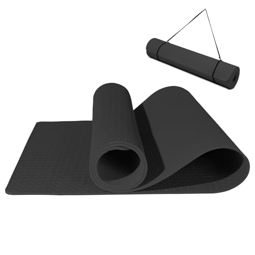 Fitvids mångsidiga yogamatta med bärrem, 6,35 mm (1/4-tum) tjock med hög densitet, anti-slitage, svart