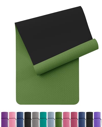 Yogamatta, halkfri och miljövänlig TPE sportmatta med bärrem, gymnastikmatta för pilates workout, fitnessmatta, 183 x 61 x 0,6 cm (grön-svart)