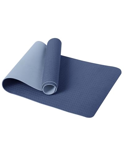 Good Nite yogamatta träningsmattor träning pilates fitnessmatta för kvinnor män halkfri tjock 6 mm högdensitet gymnastikmattor med bärrem Tpe 183 x 61 x 0,6 cm (mörkblå/himmelsblå)
