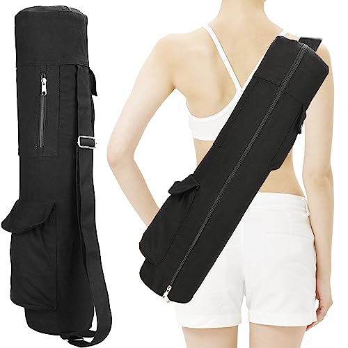 Ehuihuan Yogamatta väska, vattentät yogaväska med justerbar axelrem, yogamattväska, svart yogapåse, pilatesväska dam, yoga-tillbehör