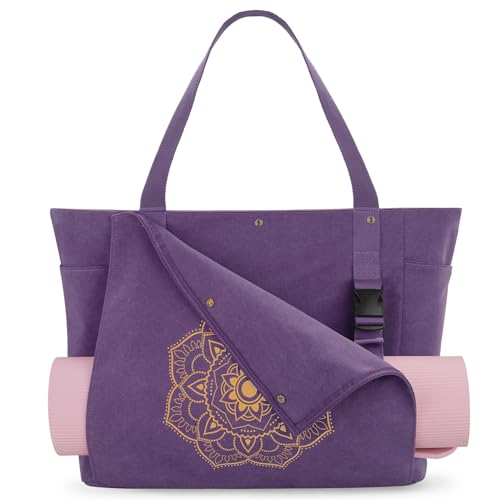 ELENTURE Stor yogamatta väska för kvinnor, rese gymväska för pilates kontor strandträning, tygväska med mattrem för 1/4 tum ~ 1/2 tum tjock träningsmatta