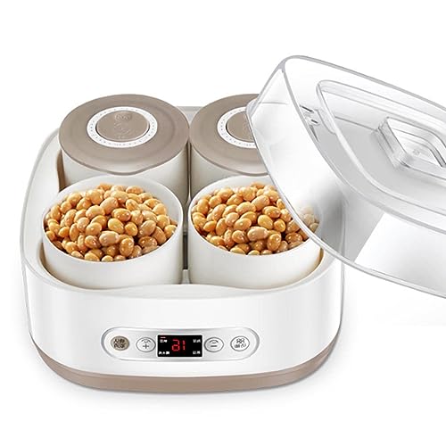 Yoghurt Natto-maskin, 300 W Intelligent Natto-jäsningsångkokningsmaskin med 4 jäsningskoppar, degfastare, keramisk köksbehållare för yoghurt, Tempeh, konstant temperaturkontroll