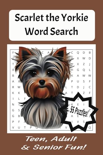 Scarlet the Yorkie Word Search Puzzle: Humorous Dog Word Searche about Yorkshire Terriors. Personalities. traits, and temperment. All Dog Lovers will have fun. 55 Puzzles, 110 pages