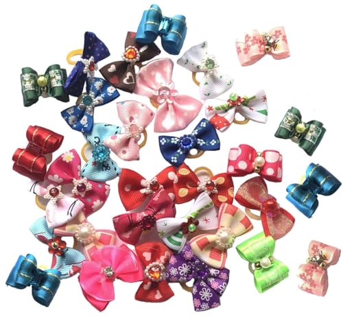 Carykon 50 st husdjurshår rosett med gummiband för yorkie små hundar – blandade färger