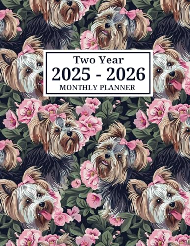 2025-2026 Dog Monthly Planner: Two Year Schedule Organizer From January 2025 To December 2026 - Cute Yorkie Puppies and Flowers Cover