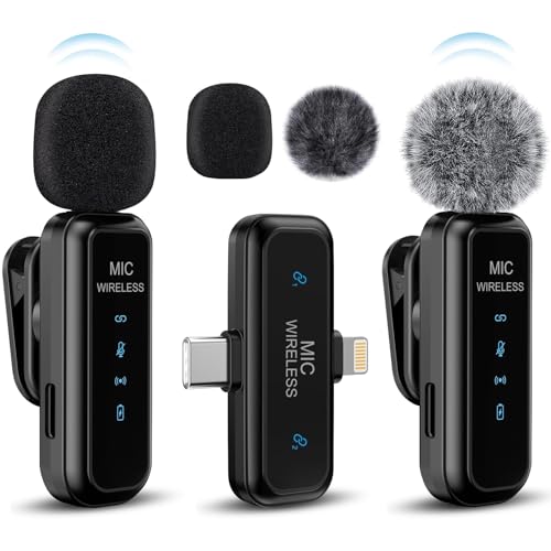 Hefty Lavalier mikrofon trådlös för iOS, trådlös minimikrofon för inspelning, livestreaming, YouTube, TikTok, Facebook, brusreducering, plug and play, ingen app och Bluetooth krävs