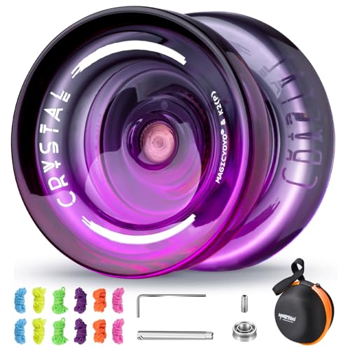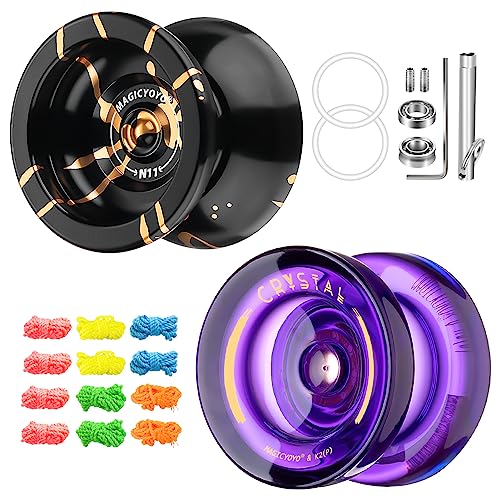 MAGICYOYO Crystal Yoyo K2, Profi JoJo för responsiva och oresponsiva, trick JoJo med tomgång och kullager, Magic JoJo för barn och nybörjare, med 12 sladdar, fodral, tillbehör (svart lila)