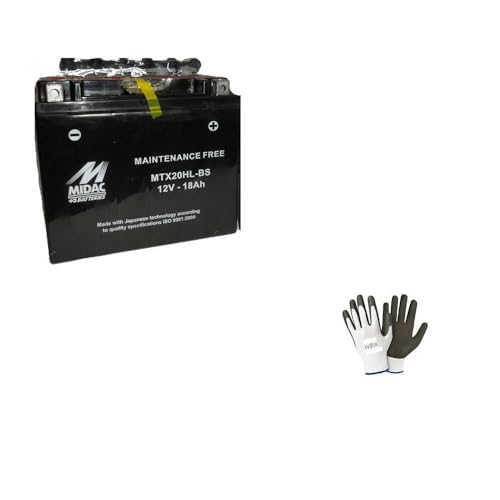 KOMPATIBEL MED HARLEY DAVIDSON FXDC Dyna Super Glide Custom 1584 från 2007 till 2013 YTX20HL-BS MIDAC-batteri redo att användas för montering 18 AH ampere 12 volt 175 x 87 x 155 mm