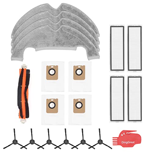 DingGreat reservdelar för Dreame Bot Z10 Pro/Dreame L10 Plus robotdammsugare, 1 huvudborste 6 sidoborste 4 filter 4 torkdukar 4 dammpåsar 1 rengöringsborste
