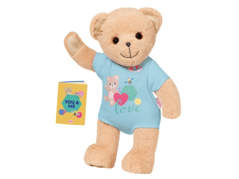 BABY född Zapf Creation 835616 Björn, blå med blå sparkdräkt, nallebjörn, gosedjur, rörliga armar och ben, vridbart huvud, tvättbart för handtvätt, med vänskapsbok och klistermärkesark.