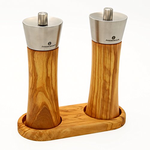 Zassenhaus Set saltkvarn & pepparkvarn Augsburg olivträ 18 cm med matchande underlägg