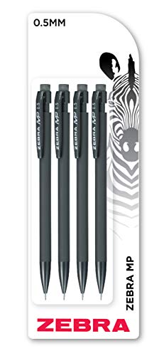 Zebra Pen MP Mechanical Pencil, 0.5mm, Black Barrel, Standard HB Lead, Built-in Eraser, 4-Pack
