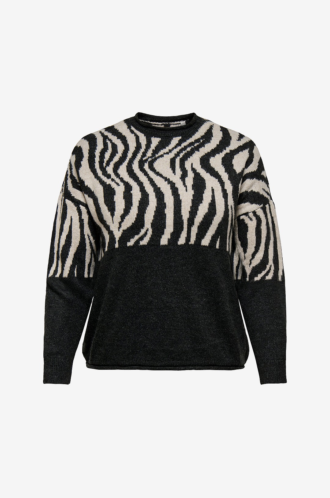 Only Carmakoma - Tröja carJade Zebra L/S O-neck Knt - Svart