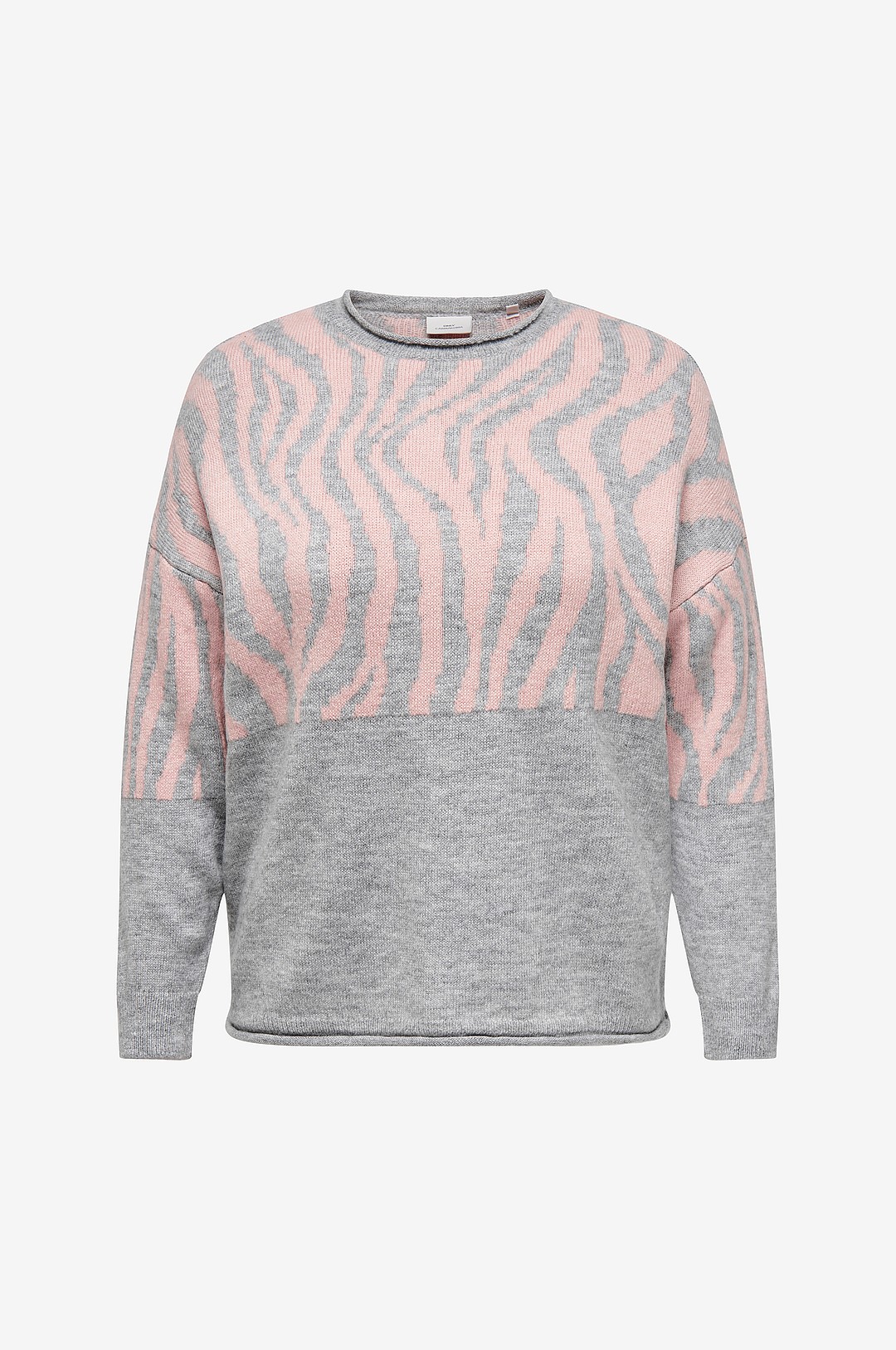 Only Carmakoma - Tröja carJade Zebra L/S O-neck Knt - Grå