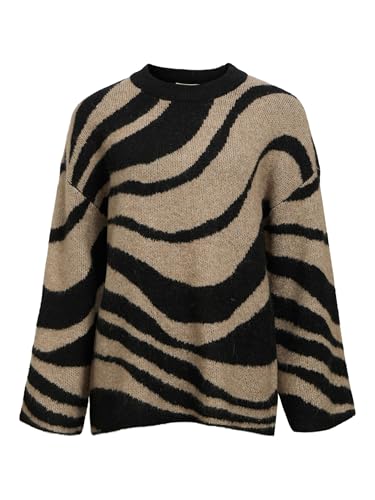 Objekt OBJDIANA LO L/S stickad tröja NOOS, Svart/mönster: zebra ökenbrungrå, M/L