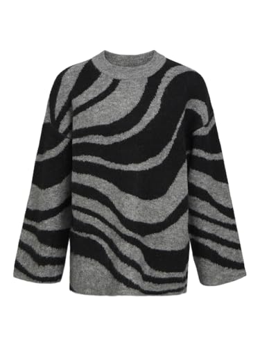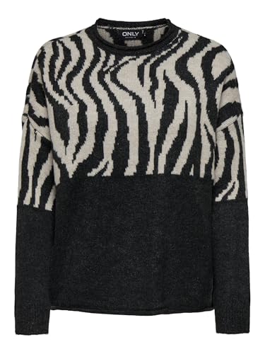 ONLY Onljade Zebra Ls O-hals Cc KNT stickad tröja, Pirat svart/mönster: whitecap grå, M