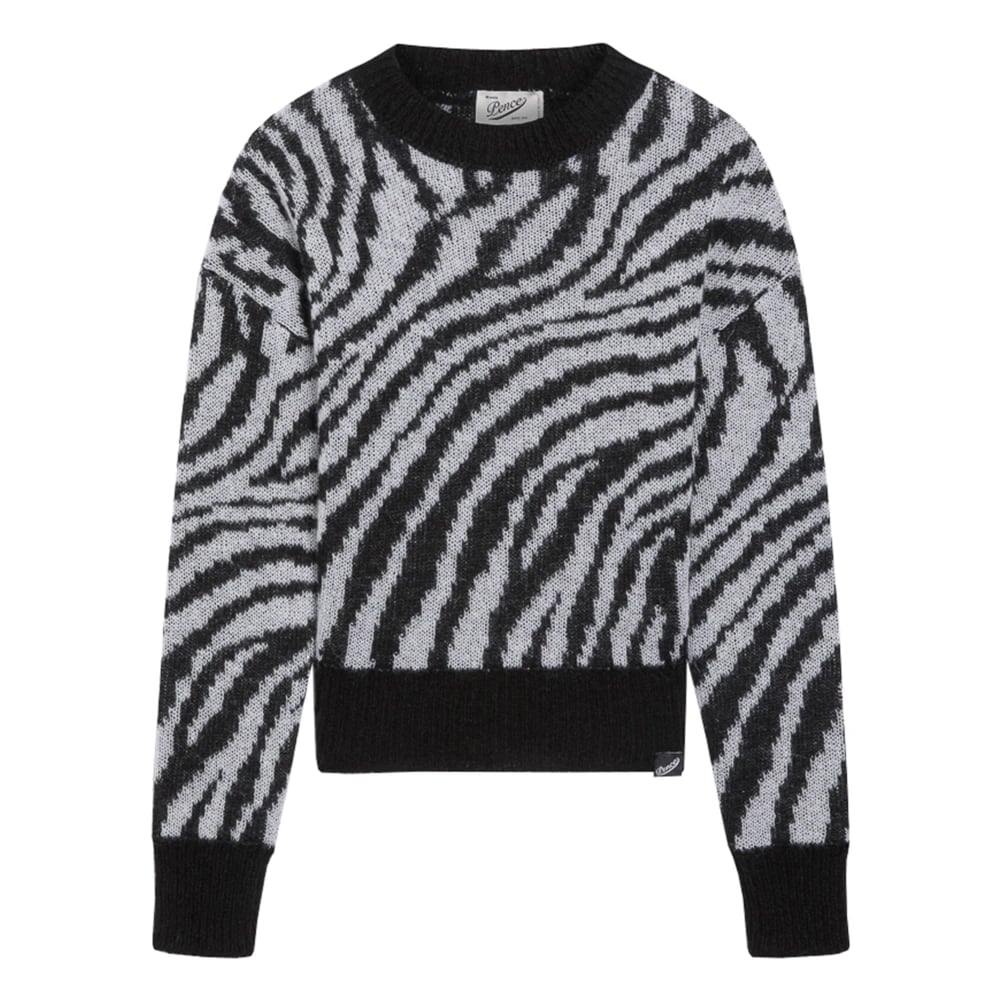 OBJRAY L/S stickad tröja AOP NOOS, Svart/mönster: sandshell zebra, S